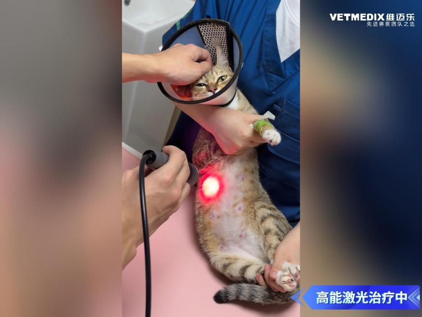 O ingurgitamento mamário pós-parto é um problema comum em gatas. Sem tratamento oportuno, pode afetar gravemente a qualidade de vida e a saúde da mãe gata, afetando potencialmente a amamentação normal dos gatinhos. Em casos graves, sem intervenção imediata, podem ocorrer condições mais graves. A terapia a laser de alta energia, como novo método de tratamento físico, tem sido amplamente aplicada na medicina veterinária nos últimos anos. Por meio da irradiação a laser de alta densidade de energia, promove a reparação dos tecidos, alivia a dor e melhora a circulação sanguínea.
